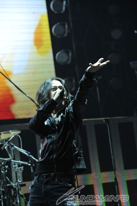 「00」の新たなる刻が動きだし、スクリーンには劇場版特報が流れるというサプライズが。会場はさらなる興奮に! 謎のキャラクターやセリフ、マイスターやソレスタルビーイング・メンバーの新たな戦いの予感、そして宇宙を駆ける新たなガンダムたち……。「00」劇場版への期待が最高潮に達したとき、UVERworldが本日のラストナンバーである、セカンドシーズン第1期 OPテーマ「儚くも永久のカナシ」を熱唱! 劇場版のテーマ曲をUVERworldが担当することも発表され、「00」劇場版が動きだしたことを実感できたステージとなった。