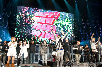 ヒマワリのようなイエローの衣装でステージに立つ石川さん。「2010年も皆さんにとってよい年でありますように」(石川)