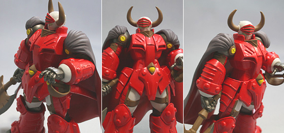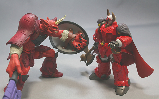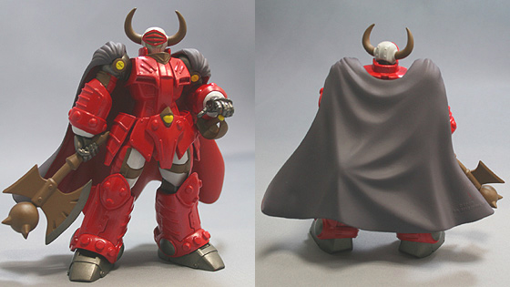 | まずは「戦士(ファイター) ガンキャノン」から遊んでいきますよ~!鮮やかな赤いボディはツヤツヤとしていて、光沢が美しい!頼もしいまでの貫録を醸し出すシルエットも魅力的です。 | |