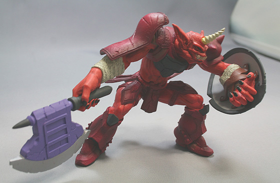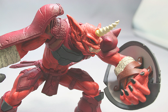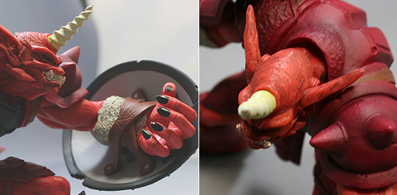 | 安定感があり、動きのあるポージングにも関わらず、2本足でしっかりと立ちます。細部までこだわって作られているこのシリーズ、表現のクオリティがとにかく高いんです。肌の色、歯、爪。血管や、使いこまれた武器。見所が盛りだくさん! | |