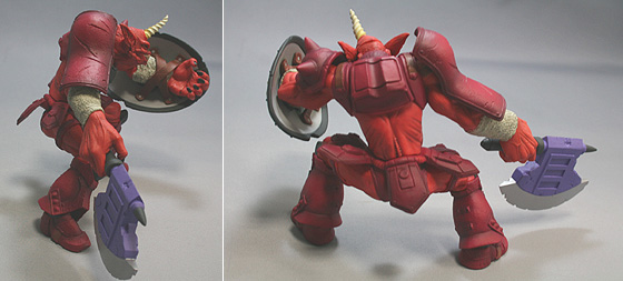 | こちらは「シーフザク」です。こちらも赤いボディでの登場です。「戦士ガンキャノン」とはまた違った質感。艶のないところが生肌らしさを演出しています。 | |