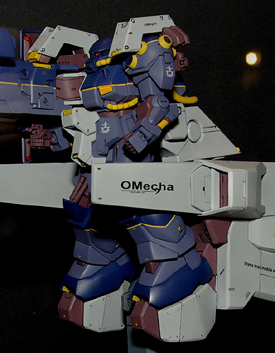ヘイズルは基本的にこのようなフルアーマー状態で運用される。この作例は「1/100 MGジム・クゥエル」をベースに製作している。