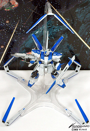 ▲キットは「ディスプレイベースセット」となっておりディスプレイ用のスタンドも同梱されている。フィン・ファンネルをビームバリア展開状態でディスプレイすることが可能だ。