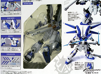 Hi-νガンダムは背面のファンネル・ハンガーに6基のフィン・ファンネルを装着すると、小スケールとは思えないボリュームを感じさせるキットだ。関節の広範囲な可動や装甲の開閉、そこから露出する内部メカなど、いじり倒したくなる数々のギミックがポイントだが、まずは拡大してぐるぐるしながら各パーツのディテール、仕上げの美しさ緻密さを確認して欲しい。