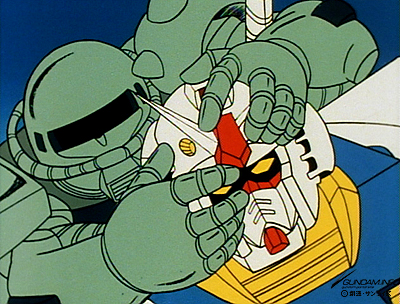 「こんなはずでは」という作劇はガンダムで定番のもの。無断で出撃したセイラも、熟練していたつもりが実機訓練をしておらず、発進の加速に気分を悪くしてしまう。美貌のヒロインが胃の中身を逆流させそうになる描写に、かつてないほどの生身の感覚を覚えたシーンでもある。