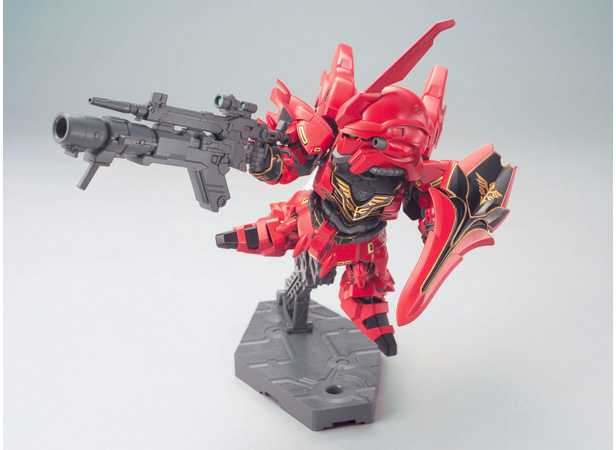 ■角度が調節できる台座パーツ、「シナンジュ本体」の武装パーツに加え、新規追加武装のバズーカも付属。