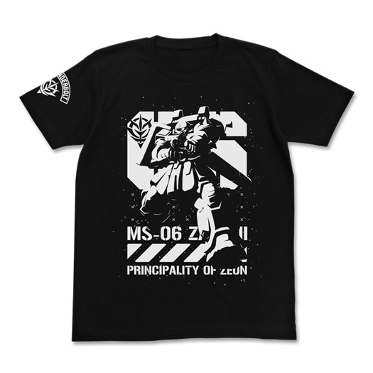 アニメ『機動戦士ガンダム サンダーボルト』に登場する「量産型ザク」をプリントしたTシャツ。