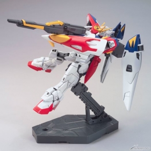 『新機動戦記ガンダムW』より、主人公ヒイロ・ユイの乗機「ウイングガンダムゼロ」がHGシリーズで登場。差し替えによりネオバード形態へ変形可能なほか、ツインバスターライフルには連結、分離ギミックが搭載されている。