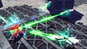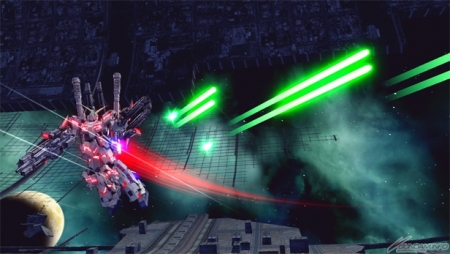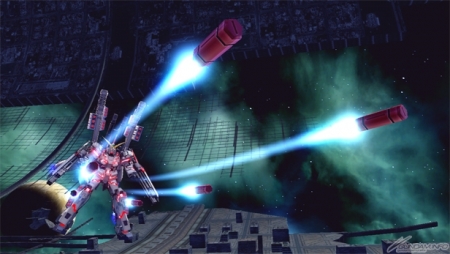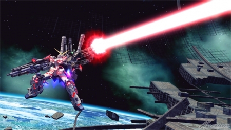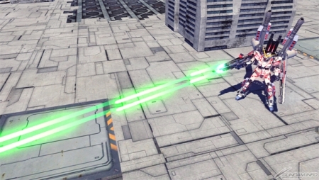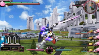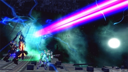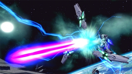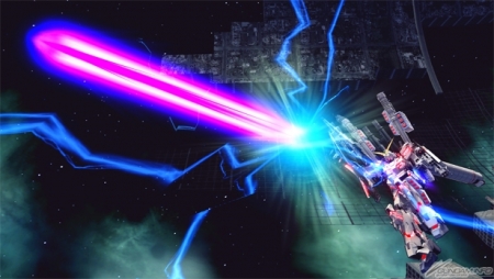 ▲特殊射撃武装では「メガ・ビーム・ランチャー」から照射ビームを発射する。レバー入力によりビームを曲げることも可能となっている。