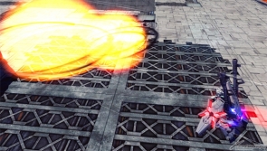 ▲チャージ格闘では、脚部の「ハンド・グレネード」を発射する。格闘武装とは違い、移動しながら撃つことはできなくなる。