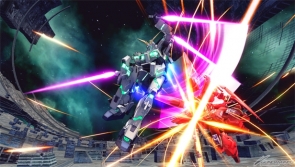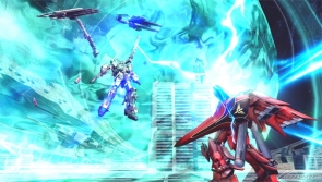 ▲全形態共通のバーストアタックは「虹の彼方に」。「バンシィ・ノルン」と共に格闘攻撃を行い、最後にビーム・マグナムを発射する。