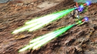 ▲上半身と下半身を分離させて攻撃するフォースインパルス形態のサブ射撃。敵の攻撃を回避しながらビームを撃つことができるぞ。