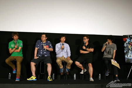 当日は、本作のキャラクターデザインを務める吉田健一氏、メカニカルデザインを務める安田 朗氏と形部一平氏、デザインワークスを務めるコヤマシゲト氏、サンライズの小形尚弘プロデューサーが登壇。