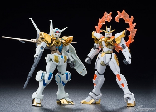 今回発表されたのは、金色に輝く2作品の主役機が描かれた「キャンペーンコラボビジュアル」と、同ビジュアルをイメージした「RISE!カラー」のガンプラセットだ。