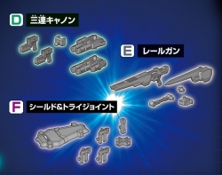 (D.三連キャノン、E.レールガン、F.シールド&トライジョイントを装備)