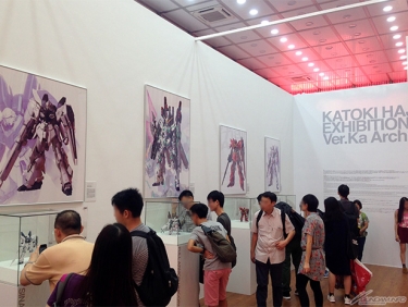 ▲中ではカトキ氏がこれまでに手がけた数々のガンダムをイラストと立体物で紹介!