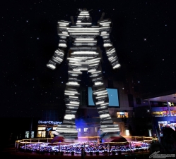 ダイバーシティ 東京プラザのフェスティバル広場にある「実物大ガンダム立像」では、冬季限定演出として「実物大ガンダム立像ウィンターVer.プロジェクションマッピング」が12月5日(土)から2016年2月14日(日)まで開催される。