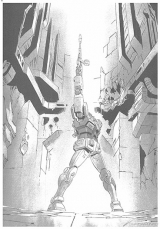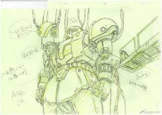 ▲アニメ「THE ORIGIN」原画[左]、アニメ「THE ORIGIN」設定資料[右]。