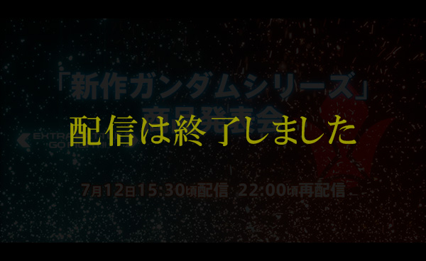 7月12日(火)に行われる「新作ガンダムシリーズ商品発表会」の模様は、当日15:30頃より「ガンダムファンクラブ」と「バンダイチャンネル」にて同時ライブ配信されます。