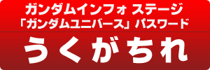 そしてお待ちかね! ガンダムインフォのために用意して頂いたステージが遊べるようになるパスワードを発表します! ガンダムインフォステージは「ガンダムユニバース」と「湖の秘密」の2つ。今回は「ガンダムユニバース」のパスワードを発表します!