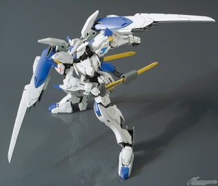 『鉄血のオルフェンズ』より、アグニカ・カイエルの魂が宿るとされる「ガンダム・バエル」がHGシリーズでキット化!プロポーションを設定どおりに再現!可動範囲も広く、マウントした武器に手をかけるなどのポージングも可能!二刀流を再現できる主要武装も付属する。