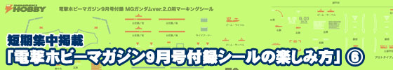 「電撃ホビーマガジン」編集者がリレー方式で、9月号の付録であるMGガンダムVer.2.0用の特大シールセットの楽しみ方を伝授。今回は前々回の宣伝部員の流用ガンプラ製作その2です。