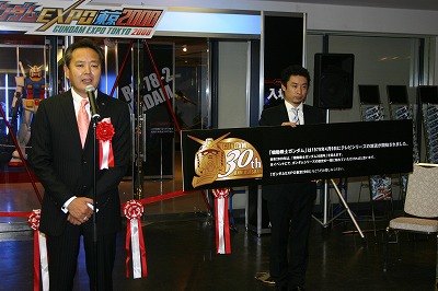 ▲セレモニーのはじめには「チーフガンダムオフィサー」のバンダイ上野社長より、来年に控えた「ガンダム30周年」のロゴが初めて披露されたのだ。