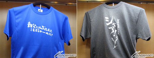 会場限定名古屋弁グッズはTシャツ、ハンドタオル、うちわなどのラインナップ。「親父にもぶたれたことにゃーのに!」など、あの名ゼリフが名古屋弁で書かれています。