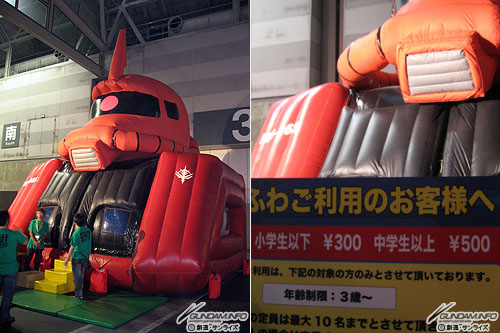 「シャア専用ザク型ふわふわ」は子供たちに大人気!……と思ったら、なんと大人も中に入って遊べることが判明。遊んだあとは「認めたくないものだな。自分自身の、若さゆえの過ちというものを……」とつぶやくべし。