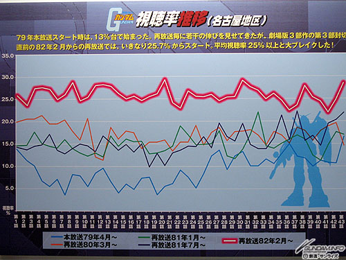ミュージアムエリアにはメ~テレの倉庫から発掘されたという秘蔵の資料をはじめ、『機動戦士ガンダム』のセル画やガンプラなどが展示されています。中でも名古屋地区の視聴率表はある意味衝撃的!?