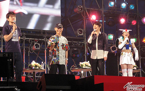 ステージエリアでは豪華ゲストが多数出演するプログラムが3日間通して組まれています。24日(金)のグランドオープニングステージには富野監督、及川光博さん、若井おさむさん、喜屋武ちあきさんが登場! 喜屋武さんは“キャンダム”のコスプレで会場を盛り上げてくれました。