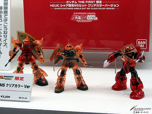 同じく会場限定ガンプラ「HGUC 1/144 シャア専用MSセット クリアカラーバージョン」。シャア専用ゲルググは初のクリアカラー化です。