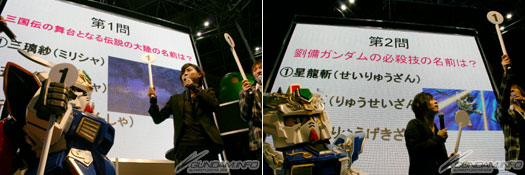決めるべく、クイズ対決が提案され、「SDガンダム三国伝」に関するクイズに答えてその知識を競う、