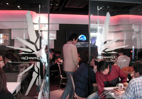 店内は落ち着いた雰囲気で、ガンダムに関するグッズ紹介などの最新映像を楽しんでいた。