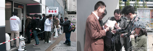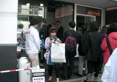 そして、ガンダムカフェでしか変えないオリジナルグッズ満載の「物販」コーナーにも20人近くの人々が並び、新たな秋葉原土産としての期待値の高さが伺われた。
