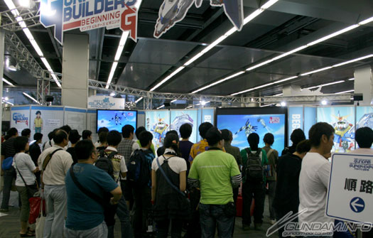アーケードゲーム「機動戦士ガンダム 戦場の絆」では、ガンダムの操縦を無料で体感できる「ガンダム試乗キャンペーン」を実施。長い行列が作られ、その人気の高さが伺えた。 |