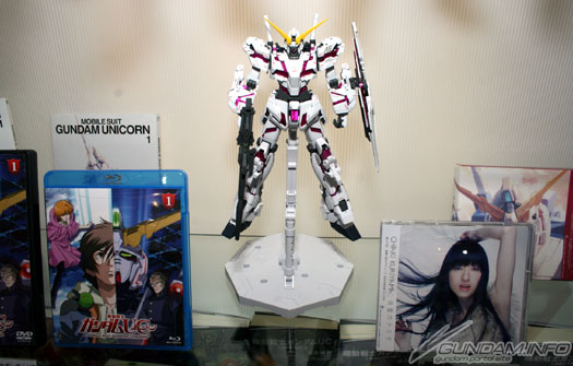 ガンプラのほか、発売中のepisode1「ユニコーンの日」のDVD・Blu-rayDisc、CDなどを展示。