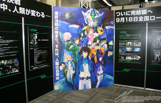 いよいよ9月18日より全国ロードショーとなる「劇場版 機動戦士ガンダム00 -A wakening of the Trailblazer-」のコーナーでは、最新アイテムや前売りチケットの各種特典を展示。