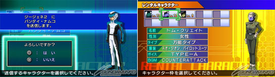シリーズ初となるこの機能では、“射撃”や“格闘”など好みに応じたステータスの「成長タイプ」に加えて、「名前」、「性別」、「服装」、「ボイス」、さらには「戦闘時BGM」までも自由にエディットすることが可能だ。