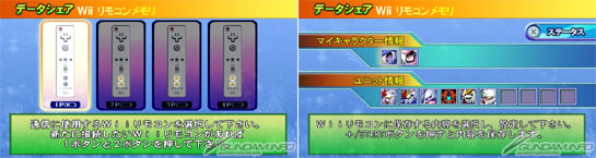 ▲Wii版ではWiiリモコンのメモリを介してデータの送受信を行う。
