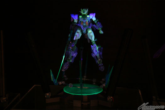 フィギュア生活をもっと楽しむ「魂ライフ」のコーナーでは、ブラックライトを用いた新しいディスプレイスタイルを展示。ブラックライトを当てることにより、各素材がそれぞれ異なる輝きをみせる。