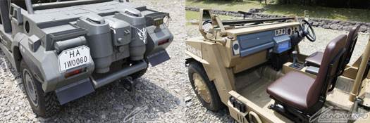 ▲昨年の静岡ホビーショーにて展示された「1/1サウロペルタ」が今回も登場。連邦軍とジオン軍の軽機動車輌が並ぶ様は壮観の一言。