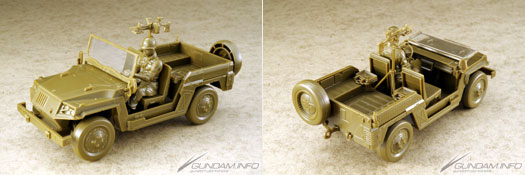 ▲バンダイホビー事業部の協力の下、地球連邦軍「M72 1/2tトラック ラコタ」を付録プラモデルとして初キット化。全長は約12cm。フィギュアや細部の組み立てには接着剤が必要ですが、ほぼスナップフィットで組み上がる仕様。