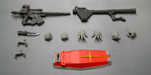 ガンキャノンには、シールド、ビーム・ライフル、ハイパー・バズーカ、コンバットナイフに加え、ガンダムと同じく交換用手首が6個付属。