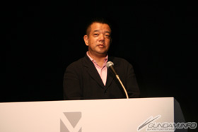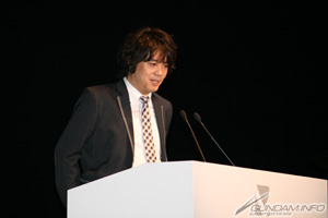 宮河氏からは、新TVシリーズの立ち上げに際して「ガンダムUC」における小説家・福井晴敏氏のような新しいパートナーを模索していたところ、様々な経緯があって日野氏と出会い、そしてレベルファイブの持つコンテンツが“幅広い年齢層”という新TVシリーズのテーマに合致していることから、一緒に「ガンダムAGE」をスタートさせることなったという、企画立ち上げ時のエピソードを披露。