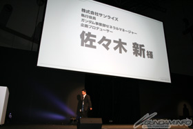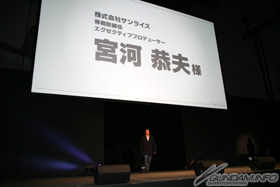 続いてはTVアニメを製作するサンライズより、エグゼクティブプロデューサー・宮河恭夫氏と、企画プロデューサー・佐々木 新氏がゲストとして登壇し、「ガンダムAGE」の立ち上げやアニメの製作についてコメントした。