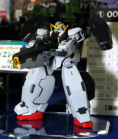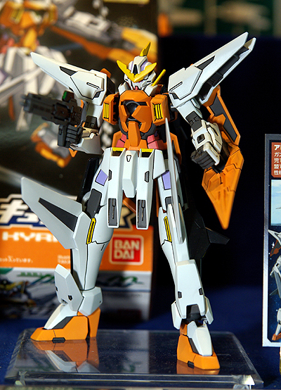 グレードの高いHGシリーズ。色を塗らなくてもほぼ完成品に近い状態に組みあがる。肩の二重関節や、脚部の多重関節により、ポージングなども幅広く取れる。なんといっても今回、シルエットがシャープになっており、スタイルも抜群にカッコイイ。また、ティエレン、ユニオンフラッグなどもHGシリーズから登場し、変形、可動などはアニメのイメージそのままに再現できる。