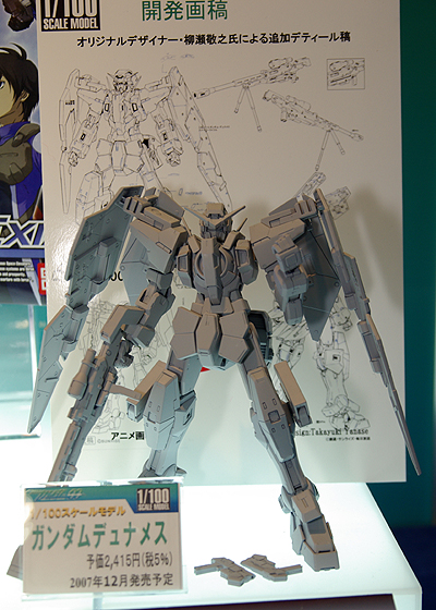 2007年10月13日(土)、14日(日)に、千葉県・幕張メッセで開催された「2007プラモデル・ラジコンショー」(第47回全日本模型ホビーショー)のレポートをお届けする。TV放送が開始され、盛り上がっている「機動戦士ガンダム00」のプラモデル、完成品フィギュアなどが一同に展示された。HG、1/100、1/60、MS IN ACTIONなど、どの商品も今までのシリーズの路線上にあるが、モデルのエッジや、造形の完成度などが今までより遥かにグレードが上がったように見えた。