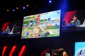 予選ブロック終了後には「ステージアトラクション」がスタート。登壇したバンダイナムコゲームスのプロデューサー・馬場龍一郎氏から、「機動戦士ガンダムVS.」シリーズ最新作「機動戦士ガンダム エクストリームバーサス フルブースト」の最新情報が発表された。