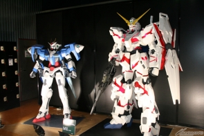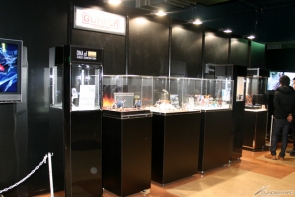 会場ロビーでは巨大な「ダブルオーガンダム」と「ユニコーンガンダム」がお目見え!最新ガンダムアイテムも多数展示され、現在予約受付中のララビットマーケット限定「ガンダムEXTREME VS.仕様 PS3用アーケードスティック」の実物も展示されていた。また、景品としてガンプラが貰えるダーツコーナーも大いに賑わっていた。